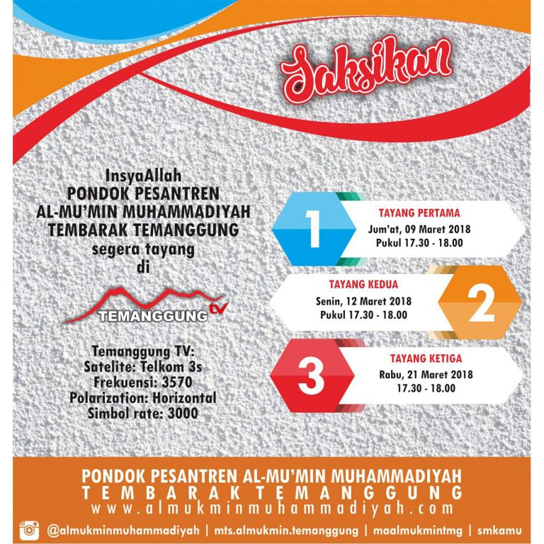 Dalam rangka mempromosikan ma’had kita, Pondok Pesantren Al Mu’min Muhammadiyah Tembarak Temanggung bekerja sama…